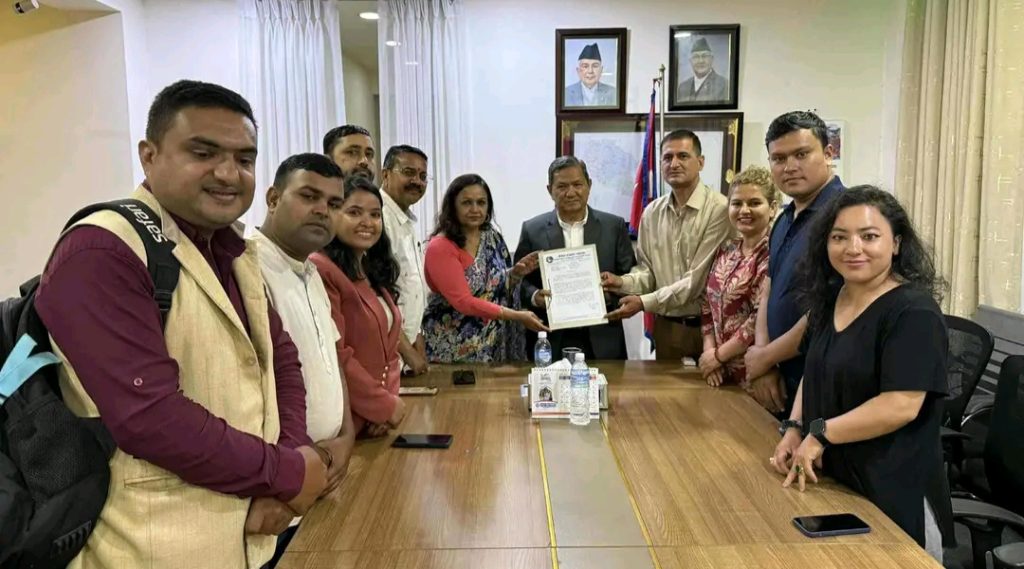 हेटौंडा । अनलाइन सञ्चार माध्यममा दर्ता र नवीकरणको काम तत्काल खुलाउन नेपाल पत्रकार महासंघले सरकारलाई ७२ घण्टा सम्मको अल्टिमेटम दिएको छ । बुधबार पत्रकार माहासंघकी अध्यक्ष निर्मला शर्मा नेतृत्वको प्रतिनिधि मण्डलले सञ्चार तथा सूचना प्रविधिमन्त्री पृथ्वीसुब्बा गुरुङलाई ध्यानाकर्षणपत्र बुझाउँदै सञ्चार माध्यम दर्ता र नवीकरणको काम तत्कालै खुलाउन ३ दिन सम्मको अल्टिमेटम दिएको हो ।