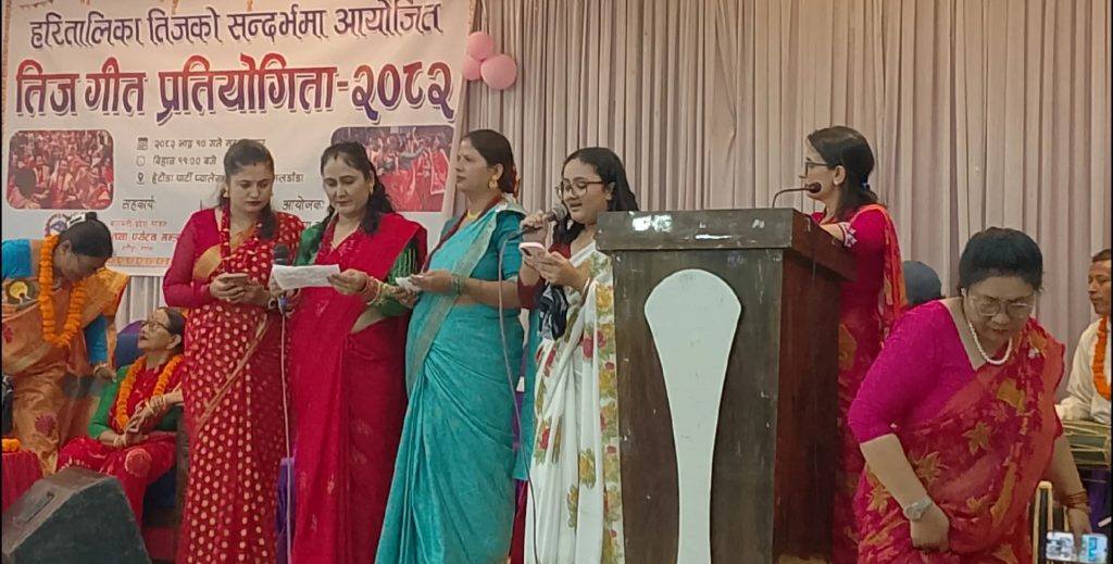 हेटौंडा । आँचल साहित्य कला पुञ्ज मकवानपुरले ा आयोजना गरेको तीज लोकगीत प्रतियोगितामा चन्द्रादेवी लामाको समूह प्रथम भएका छन् । हरितालिका तीजको अवसरमा मंगलबार हेटौंडा–४,स्थित हेटौंडा पार्टी प्यालेसमा आयोजना गरेको प्रतियोगितामा मकवानपुरगढी गाउँपालिकाकी लामाको समूह प्रथम भएका हुन् ।