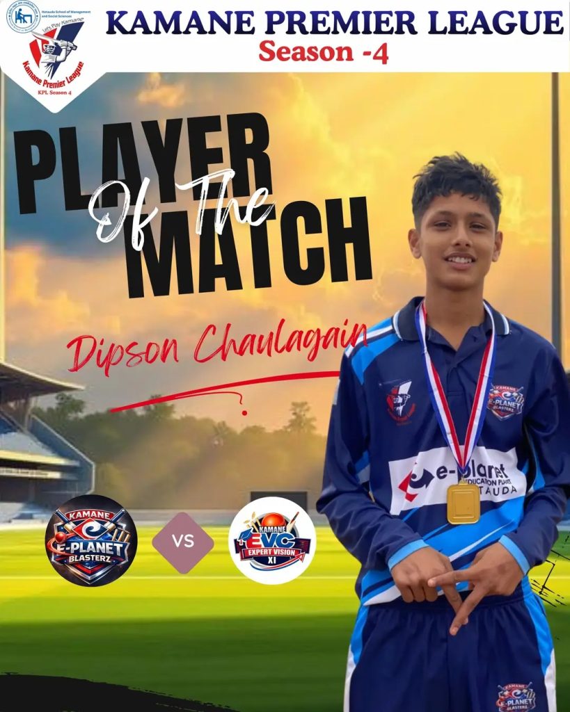 दोस्रो ब्याटिङ गरेको कमामे इप्लानेट ब्लास्टरले १५ ओभरमा ४ विकेट गुमाउँदै कमाने एक्सपर्ट भिजन दिएको रनको लक्षय भेट्टायो । कमाने एक्सपर्ट भिजनबाट युविन बुढाथोकीले ६६ रन, सुजन चौलागाईंले १४ रन र रिशभ चौधरीले ६ रन बनाएका थिए । खेलको म्यान अफ द म्याच दिप्सन चौलागाईं घोषित भएका छन् ।
