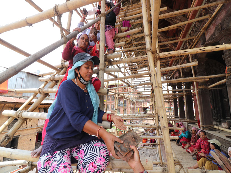 मन्दिर पुनःनिर्माणमा १०० बढी प्रकारका नयाँ इँटा चाहिने हुँदा बनाएर ल्याइएका तीनदेखि चारथरिका इँटासमेत नमिलेर पुनः बनाउनदिँदा मन्दिरको काम अघि बढ्न नसकेको मङ्गल टोल सुधार सङ्घका अध्यक्ष किरणमान प्रधानले गुनासो गर्नुभयो । उहाँले भन्नुभयो, “इँटाको आकार र प्रकार नै पुरानो शैलीअनुरुप नमिलेपछि काम अघि बढाउन ढिलाइ भइरहेको छ ।” सो मन्दिर बाहिरबाट हेर्दा त्यहाँ रहेका चार बुर्जा मात्र क्षति भएको देखिएता पनि समय ढल्किँदै जाँदा भित्रभित्रै झन् धेरै जीर्ण हुँदै गइरहेको प्रधानले बताउनुभयो । “यो मन्दिर अब जीर्णेद्धारमात्रै गरेर हुँदैन, पुनःनिर्माण नै गर्नुपर्ने भएको छ”, उहाँले थप्नुभयो ।