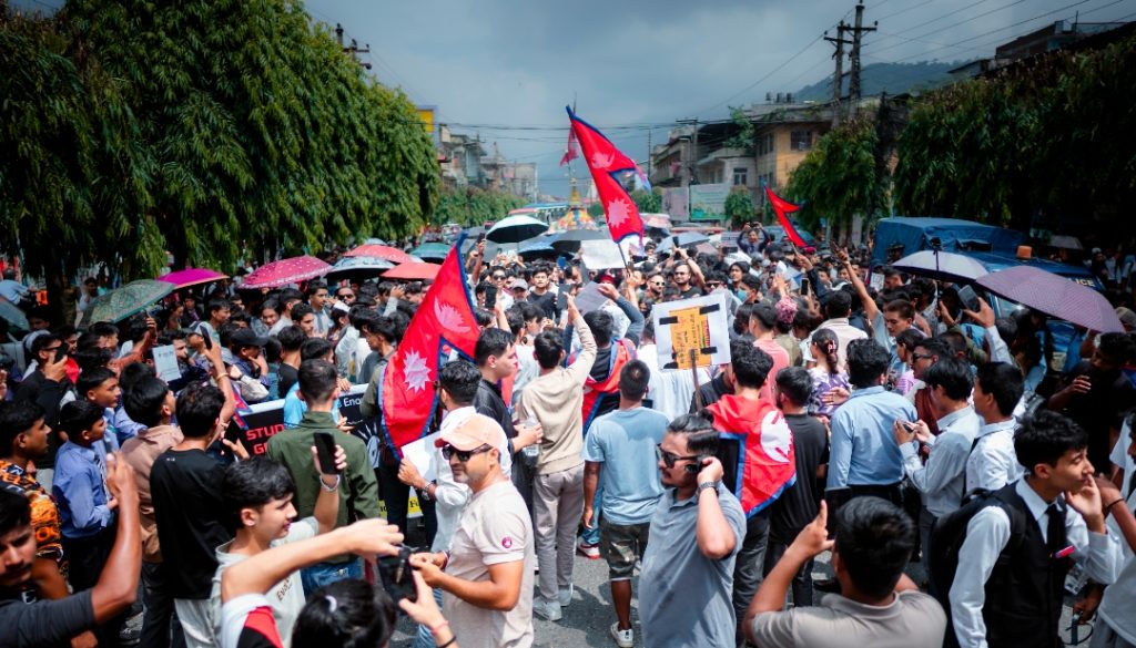 विरोध र्यालीमा नेपाली झण्डा लिएर नारा लगाउँदै युवाहरु ।