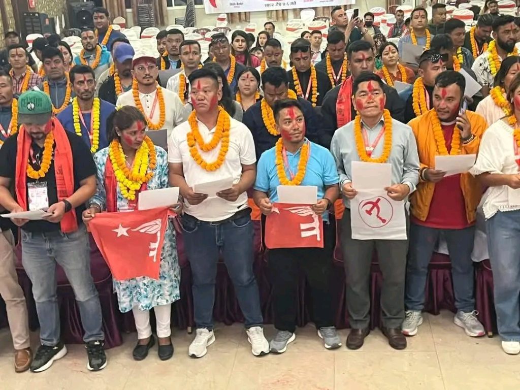 योङ कम्युनिष्ट वाइसीएलका पदाधिकारीहरुको समूहिक तस्वीर ।