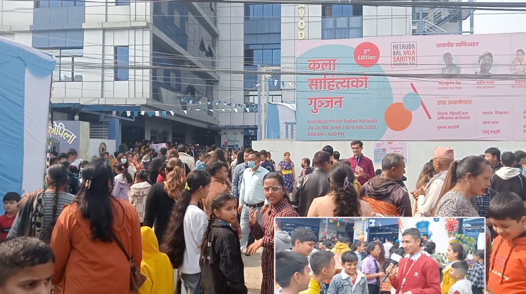 दुई दिने हेटौंडा कला–साहित्य महोत्सव–२०७९ विद्यार्थीमा पठन संस्कृतिको विकास गर्ने उद्देश्यका साथ दुई दिन २७ र २८ गते हेटौंडामा बाल साहित्य महोत्सव गरिएको हो ।