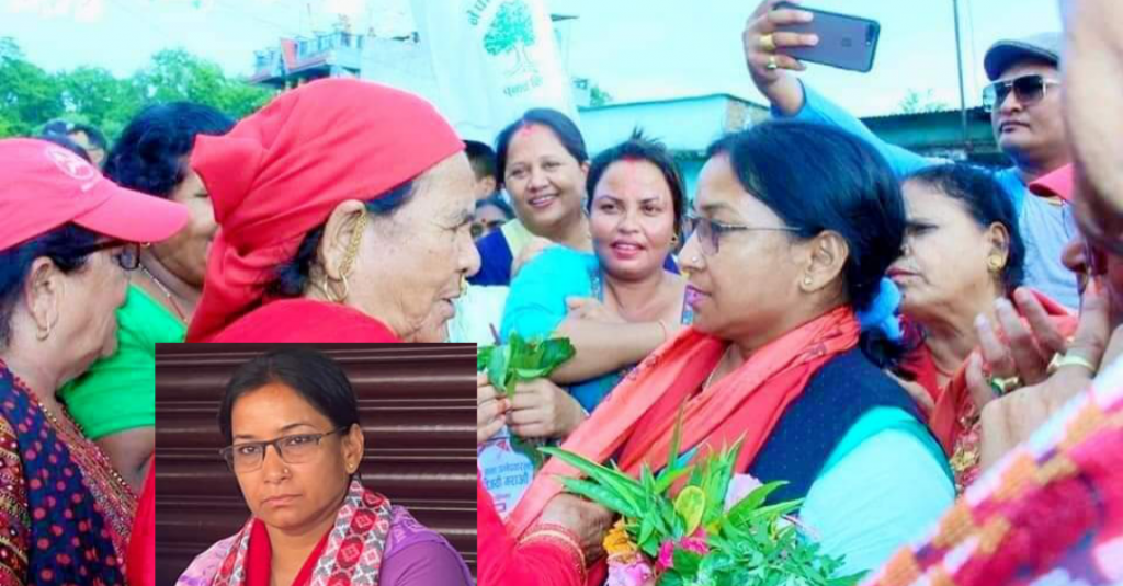 गठबन्धनको तर्फबाट मेयरको उम्मेदवार रेनु दाहाल अघि लागेरहेकी छन।