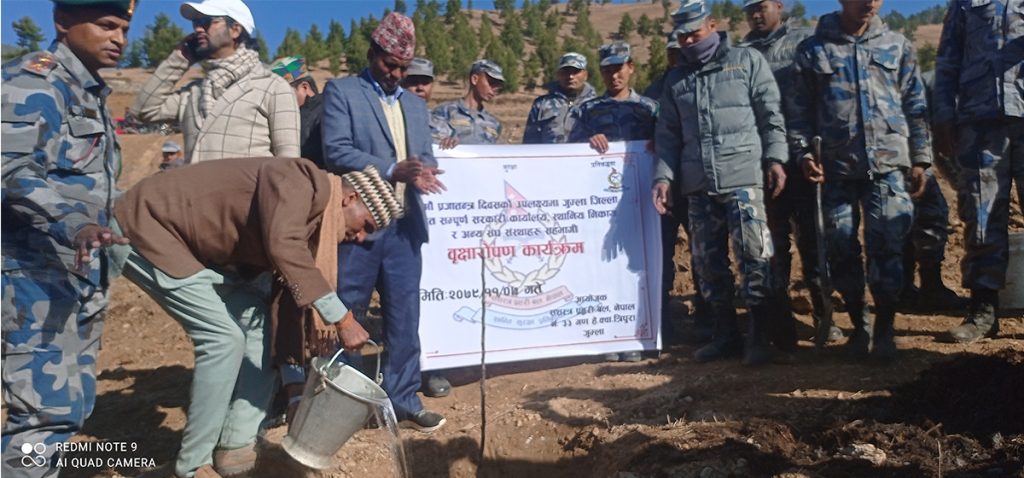 चन्दननाथ नगरपालिकाका प्रमुख राजुसिंह कठायत,हिमा गाउँपालिकाका अध्यक्ष लक्ष्मणबहादुर शाही,पातारासीकाका अध्यक्ष पूर्णसिंह बोहोरा, तातोपानीकाका अध्यक्ष नन्दप्रसाद चौलागाई र विषयगत कार्यालयका प्रमुखहरुले वृक्षारोपण गरेका थिए। उक्त वृक्षारोपण कार्यक्रममा गणपति रविन थापा,डिएसपी प्रल्हाद कार्की एसपी चेतराज जोशी प्रमुख जिल्ला अधिकारी मुकेश कुमार केसरी डिभिजन वन कार्यालयका प्रमुख दिनेशजङ्ग खत्री, भु-जलाधारका प्रमुख हिमालय साउद,स्याउ सुपरजोक कार्यालय जुम्लाका प्रमुख खेमराज शाही र उद्योग वाणिज्य संघ जुम्लाका अध्यक्ष पुरिचन्द्र देवकोटा र नेपाल पत्रकार महासंघका अध्यक्ष नेत्रबहादुर शाहीको सहभागीता रहेको थियो।