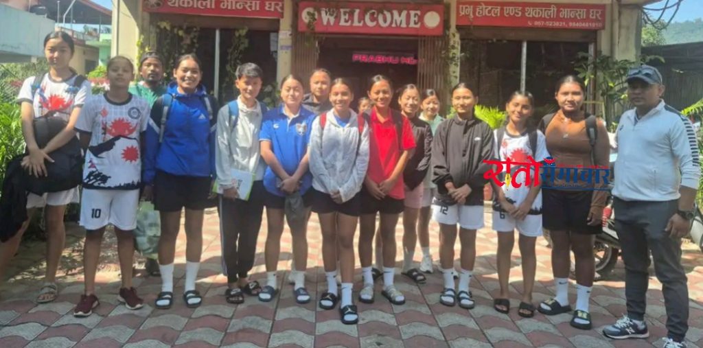 हेटौंडा फुटबल एकेडेमीको महिला खेलाडीहरु ।