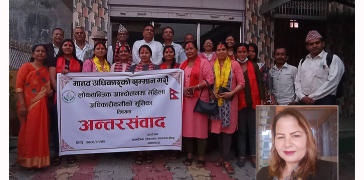 सामाजिक लोकतान्त्रिक अध्ययन केन्द्र मकवानपुर द्वारा लोकतान्त्रिक आन्दोलनमा महिला अधिकारकर्मीको भुमिका विषयक अन्तर संवाद कार्यक्रको आयोजना गर्दै गठन गरिएको मञ्चको सदस्यहरुमा कौसल्या राई, बिनिता महत, तेज कुमारी थापा,श्वेता कोईराला, मञ्जु खराल, पुष्पा भट्ट, गायत्री श्रेष्ठ, अपेक्षा बस्नेत,निरु पौडेल, विपिका कार्की र सन्तोषी बर्तौला रहेका छन्।