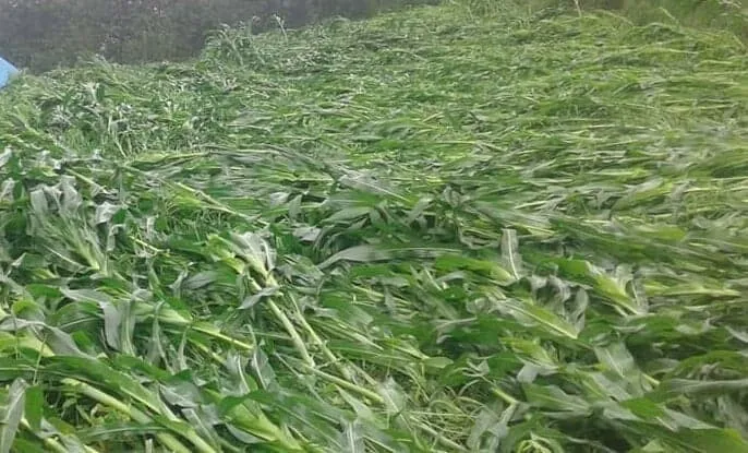 जिल्लाभर मुख्यबालीका रुपमा लगाइने मकै खेती लगाउने गरिएको तर हावाहुरीले उत्पादन दिनै नसक्ने गरी मकैको बोट ढलेको किसानले बताएका छन् । घोगा लाग्दै गरेको अवस्थामा भाँचिएर ढलेको मकै उठाउन नमिल्ने, उठाए पनि दाना नलाग्ने किसान बताउँछन् । मकैमा क्षति पुग्दा किसान निरास बनेको दुर्छिमका स्थानीय बासिन्दा एवं नेकपा ९माओवादी केन्द्र० का युवा नेता तामन राईले बताउनुभयो ।