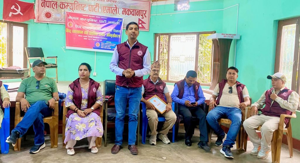 नेकपा एमालेका विभिन्न जनवर्गीय संगठन तथा पार्टी कमिटीका ६५ जना स्वंमसेवकलाई तालिम प्रदान गरिएको नेकपा एमाले मकवानपुर जिल्ला विपद व्यवस्थापन तथा स्वंमसेवा बिभागका प्रमुख शिवहरि दाहालले जानकारी दिएका छन् । प्रमुख दाहालले जिल्लामा बाढि, पहिरो, डुवान,आगलागी, हुरि बतास लगायतको प्राकृतिक प्रकोप तथा अन्य बिपदमा स्थानिय प्रशासन एवं स्थानिय सरकारसङ्ग समन्वय एवं सहकार्य गरेर स्वंमसेवक परिचालन गर्ने बताए । तालिमलाइ पिताम्बर बास्तोला, लक्ष्मण भट्टराई तथा रामजी खतिवडाले सहजिकरण गरेका थिए । कार्यक्रममा पार्टी जिल्ला कमिटीका सद्स्यहरु, नगर कमिटीका पदाधिकारी एवं सदस्यहरु, जिल्ला बिभागका सदस्यहरु तथा विभिन्न जनसंगठनका प्रमुख एवं सदस्यहरुको उपस्थिति रहेको थियो ।
