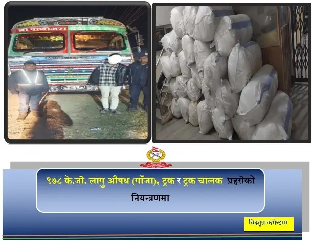 प्रहरीका अनुसार जिल्ला प्रहरी कार्यालय सप्तरीका प्रमुख एसपी उपेन्द्रबहादुर पुरीको निर्देशनमा इन्स्पेक्टर सरतबहादुर राई तथा प्रहरी टोलीले विशेष सूचनाका आधारमा प्रदेश २–०३–००१ ख ७९५४ नम्बरको ट्रक जाँच गर्दा कारोबारमा प्रयोग गरिएको १७८ केजी गाँजा भेटिएको हो ।