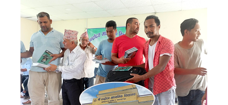विद्यालयका प्रधानाध्यापकको सभाध्यक्षता हेटौंडा वडा नम्बर ८ वडा सदस्य गोरख रायको प्रमुख आतिथ्यमा बितरन कार्यक्रम गरिएको हो ।