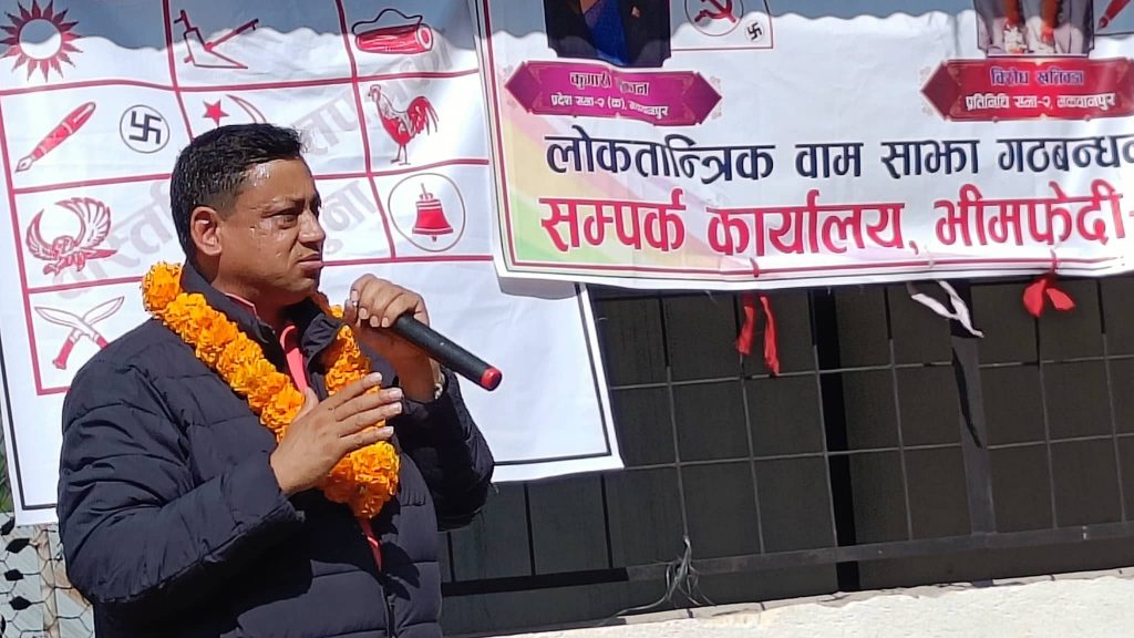 ‘आर्थिक अवस्था कमजोर भएकै कारण नाना, छाना र खानाबाट आम प्रदेशवासी बञ्चित हुनुपर्ने छैन । निर्वाचनपश्चात बागमती प्रदेशमा गठबन्धनको सरकार बन्छ । हामी ५ वर्षको अवधिमा १० हजार घर बनाउने योेजनमा छौं ।’ उनले भने । नेकपा एमाले सरकारमा छँदा पूर्वाधार विकासको कामलाई उपेक्षा गरे पनि गठबन्धनको सरकार आएसँगै १० महिनाको अवधिमा अरबौँ बजेट क्षेत्र नम्वर २ कै लागि विनियोजन गरिएको उनले बताए ।