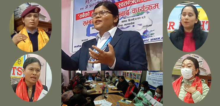 अन्तरक्रिया कार्यक्रममा सभ्य समाजको पहिचान लैंगिक हिंसा विरुद्धको अभियानको नारा सहित ७४ औं मानव अधिाकार दिवसको अवसरमा हेटौडा उपमहानगरपालिका वडा नम्बर २ मा रहेको नागरिक संवाद केन्द्रको हलमा अन्तर संवाद गरिएको हो।