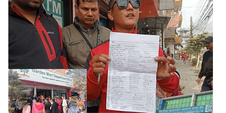 गएको बुधबार सहकारीको कार्यालयमा चल्ती खातामा रहेको रकम झिक्न पुगेपछि कुनै बिदाको दिन नभएपनि ढोकामा ताल्चा लगाएको देखेपछि आफ्नो रकम खाएर भागेको भन्दै बचतकर्ताहरु आत्तिएर संस्थाद्धारा सञ्चालित गार्डेन मार्टमा प्रवेस गर्दै घेरेका थिए ।
