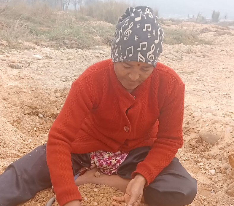 एकल महिला लक्ष्मी बिश्वकर्मा भन्छिन् ” छोरा छोरी जो भएपनि केही हुदैन् । जिवन यस्तै हो । आफु आफु व्यस्त हुन्छन् । बालुवा जम्मा गर्यो ४ दिनमा १ ट्याक्टर पुग्छ अनि २ हजार हात पर्छ । गुजारा चलाउन निकै समस्या पर्छ ।”