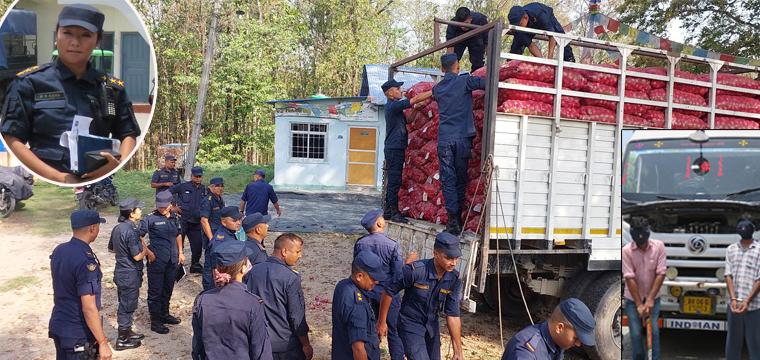 प्रहरी वरिष्ठ नायव निरीक्षक मञ्जु कुमारी रानाको कमाण्डमा खटिएको प्रहरीटोलीले आइतबार प्याजलोड भएको भारतीय ट्रकबाटअबैध कपडा सहित रन्जौद सिंह र सुधिर कुमारलाई पक्राउ गरेको हो ।