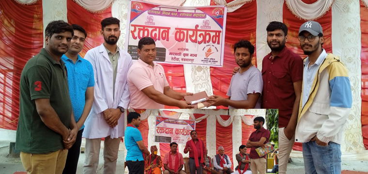 मारवाडी युवा मञ्चको आयोजनामा रक्तदान कार्यक्रम भएको छ ।