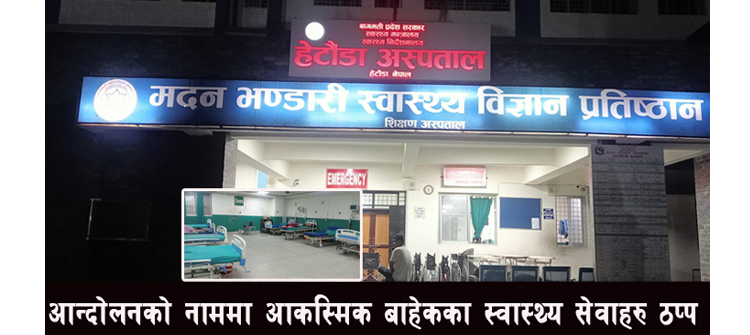 हेटौंडा अस्पतालमा दैनिकी २ हजार बिरामीले ओपीडीबाट सेवा लिदै आएको अवस्था छ भने निजी अस्पतालहरुबाट पनि त्यतीकै सेवा लिदै आएका छन्। अन्य सेवा बन्द भएपछी बिरामीहरु मर्कामा परेका छन् ।