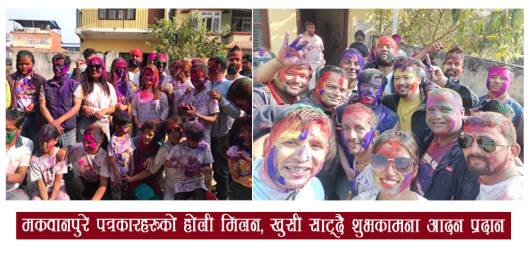 मकवानपुर शाखाको आयोजनामा मकवानपुरका पत्रकारह भेलाभई मनाइएको होली विशेष शुभकामना आदानप्रदानले रंगिन रङ्ग जस्तै बनाउन र आउदा दिनमा पनि सम्पुर्णमा खुसी भर्ने सन्देस जाओस् भन्ने सोच सहित आयोजना गरिएको मकवानपुर शाखा अध्यक्ष मणिराज गौतमले बताए ।