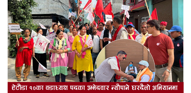 सोहीक्रममा नेकपा माओवादी केन्द्रको तर्फबाट हेटौंडा उपमहानगर वडा नम्बर १०को वडाध्यक्ष पदका उम्मेदवार सन्तोष न्यौपाने पनि आफ्नो कार्य योजना सहित टोलिनै घरदैलो अभियानमा दौडिएका छन् ।